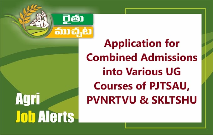 హైదరాబాద్, రైతుముచ్చట: ప్రొఫెసర్ జయశంకర్ అగ్రికల్చర్ యూనివర్సిటీ, పీవీ నరసింహారావు వెటర్నరీ యూనివర్సిటీ మరియు కొండా లక్ష్మణ్ హార్టికల్చర్ యూనివర్సిటీలలో ఇంటర్ Bi.P.C. చదివిన విద్యార్థులకు వివిధ UG కోర్సులలో ప్రవేశాలకు సంబందించిన ఉమ్మడి నోటిఫికేషన్ శుక్రవారం రోజు విడుదలైంది. బీఎస్సీ అగ్రికల్చర్, బీఎస్సీ హార్టికల్చర్, బీఎస్సీ వెటర్నరీ సైన్సెస్ & బీఎస్సీ ఫిషరీ సైన్స్ కోర్సుల ప్రవేశాలకు సంబందించిన ఆన్ లైన్ అప్లికేషన్ ప్రక్రియ PJTSAU వెబ్ సైట్ లో సెప్టెంబర్ 3 వ తేదీ నుండి 29 వరకు జరుగుతుంది.