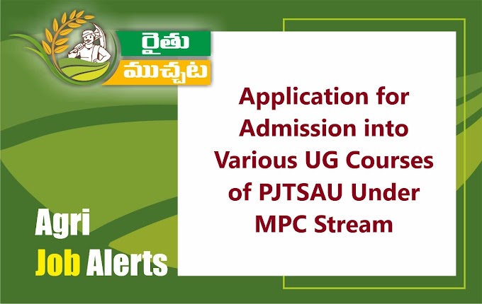 హైదరాబాద్, రైతుముచ్చట: MPC చదివిన విద్యార్థులకు రాజేంద్రనగర్ లోని ప్రొఫెసర్ జయశంకర్ వ్యవసాయ విశ్వవిద్యాలయంలో వివిధ UG కోర్సులలో ప్రవేశాలకు సంబందించిన నోటిఫికేషన్ శుక్రవారం రోజు వెలువడింది. బీటెక్ అగ్రి ఇంజనీరింగ్, బీటెక్ ఫుడ్ టెక్నాలజీ & బీఎస్సీ కమ్యూనిటీ సైన్స్ కోర్సుల ప్రవేశాలకు సంబందించిన ఆన్ లైన్ అప్లికేషన్ ప్రక్రియ PJTSAU వెబ్ సైట్ లో సెప్టెంబర్ 3 వ తేదీ నుండి 29 వరకు జరుగుతుంది.